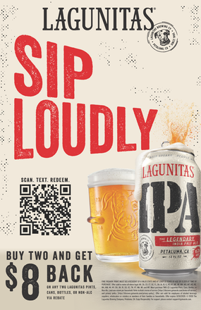$8.00 cash back with purchase of (2) Lagunitas pints, cans, bottles, or Non-Alc.